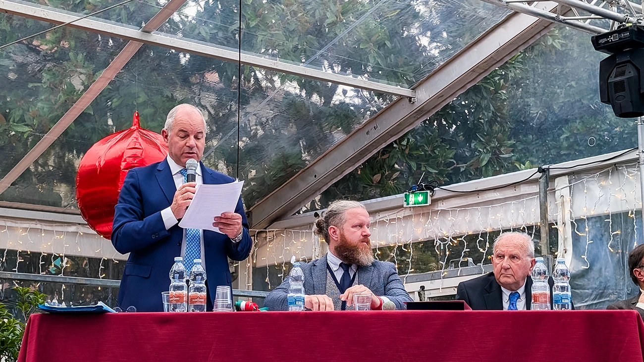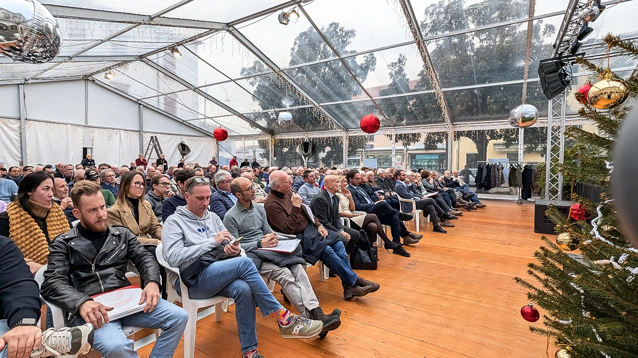 Il sindaco di Conselve, Umberto Perilli, ha aperto il suo intervento dando il benvenuto nella nuova tensostruttura che ospiterà le iniziative natalizie, sottolineando il prezioso lavoro della Pro Loco che hanno contribuito a renderla pronta per l’assemblea. «Il vostro presidente Roberto Lorin e io abbiamo fortemente voluto che l’assemblea si tenesse qui, al centro del paese, in una struttura trasparente che rappresentasse l’intima connessione tra il territorio e la cantina», ha affermato Perilli, evidenziando come la cantina non si limiti alla viticoltura, ma contribuisca a fare VITICULTURA, scrivendo la storia del nostro territorio e della nostra comunità.