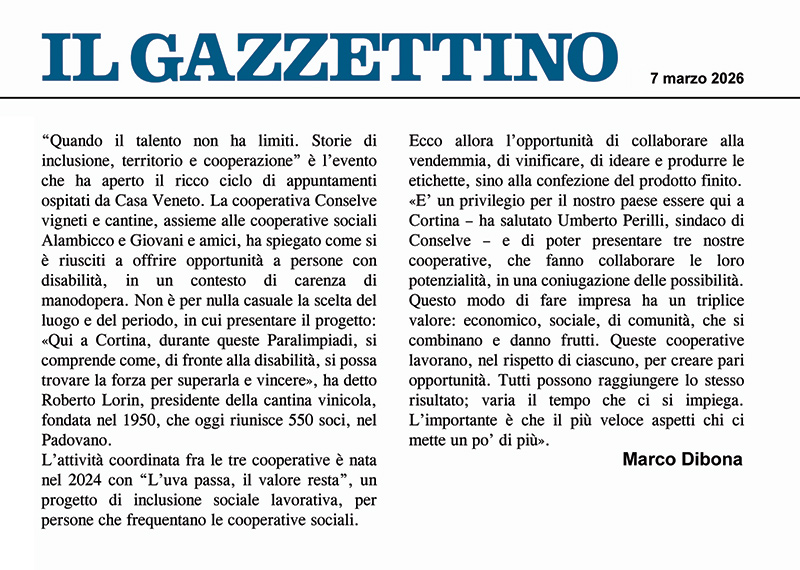 Nasce così “La Bottiglia della Cooperazione”, un progetto sviluppato insieme ad Alambicco Cooperativa Sociale, una realtà del territorio conselvano che dal 1996 opera per migliorare la qualità della vita delle persone con disabilità.